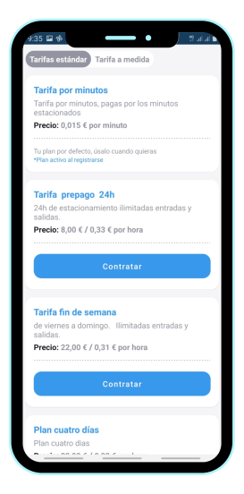 En MimoTo Parking queremos que pagues lo menos posible por tu estacionamiento. Por ello en nuestra app podrás elegir tu parking favorito y seleccionar el plan que más se ajuste a tus necesidades: fin de semana, 7 días, nocturno…